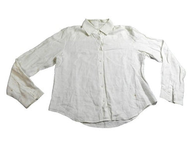 AJ Armani Jeans Shirt Womens 12 White Button Up Casual 100% Linen Italy Ladies