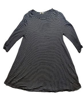 Garnet Hill Dress Womens Large Black White Striped Viscose Stretch Swing Ladies