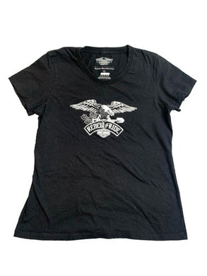 Haley Davidson Shirt Womens Extra Large Black Renew The Ride Eagle Motorcycle
