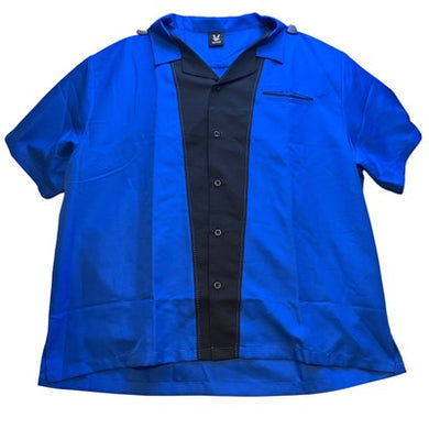 Hilton Bowling Shirt Mens 3XL Retro Button Up Short Sleeve Blue Black Rockabilly