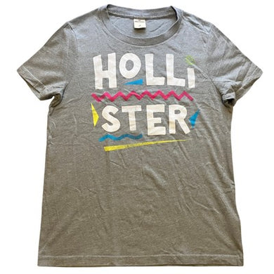 Hollister Shirt Mens Medium Retro Spell Out Preppy Academia Gray Streetwear