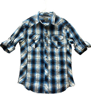 Helix Shirt Adult Medium Blue Black Plaid Athletic Fit Button Up Roll Tab Mens
