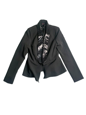Imaginary Voyage Jacket Womens Small Black Sequins Collar Open Front Blazer Suit
