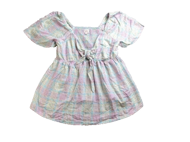 Ingrid Isabel Shirt Womens Large Multicolor Plaid Tie Front Rayon Stretch Blouse