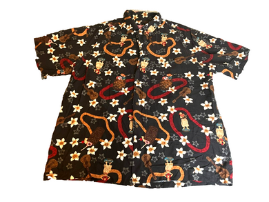 Island Moments Emme Shirt Adult Large Black Aloha Hawaiian Tiki Button Up Mens