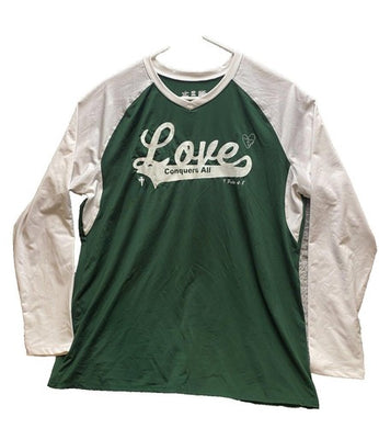 Love Conquers All Shirt Women Extra Large Green Alleson Athletic Raglan Ladies
