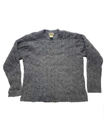 LL Bean Sweater Adult Large Gray Cable Knit Lambs Wool Nylon Outerwear Mens