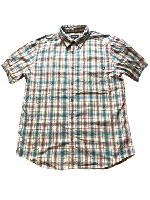 Marmot Shirt Adult Medium Teal Brown Plaid Button Up Casual Camp Outdoor Mens