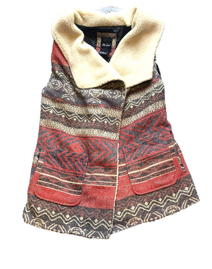 Me Jane Vest Womens Extra Large Navy Aztec Wool Blend Open Front Wrap Jacket