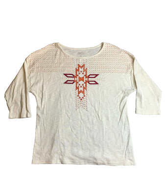 Pendleton Shirt Womens Medium Ivory Cross Aztec Woolen Mills Oversized Ladies