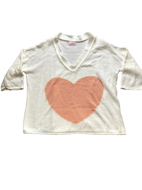 Pink Lily Sweater Womens Medium White Peach Big Heart Knit Cottagecore Oversized