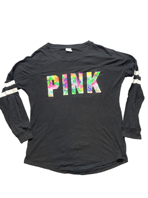PINK Victoria's Secret Shirt Womens Large 3/4 Sleeve Spell Out Logo Maroon