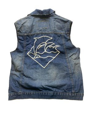 Pink Dolphin Vest Adult Large Blue Denim Button Up Patch Embroidered Kidcore Men