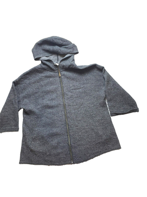 Poetry Jacket Womens 8/10 (Small) Charcoal Gray Full Zip Hooded Wool Oversized