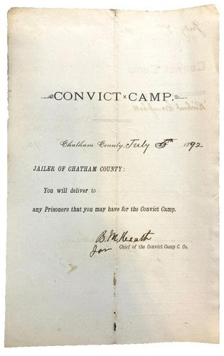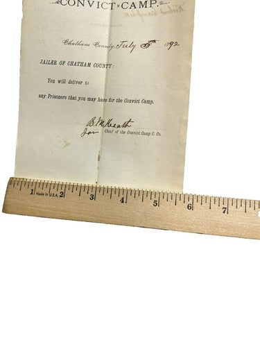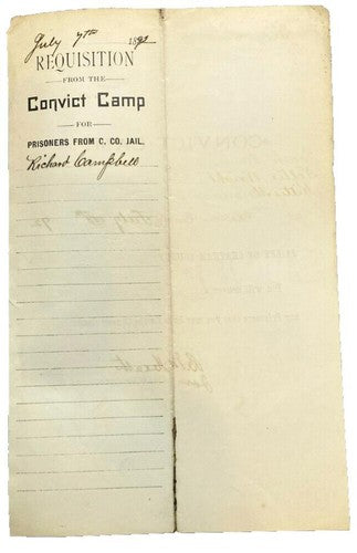 1892 Convict Camp Requisition Jailer Prisoner Georgia Antique Ephemera