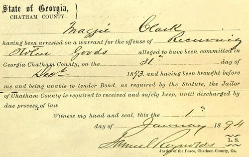 1894 Chatham County Arrest Warrant Receiving Stolen Goods Antique Ephemera