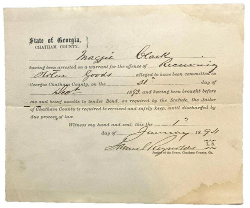 1894 Chatham County Arrest Warrant Receiving Stolen Goods Antique Ephemera