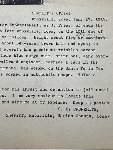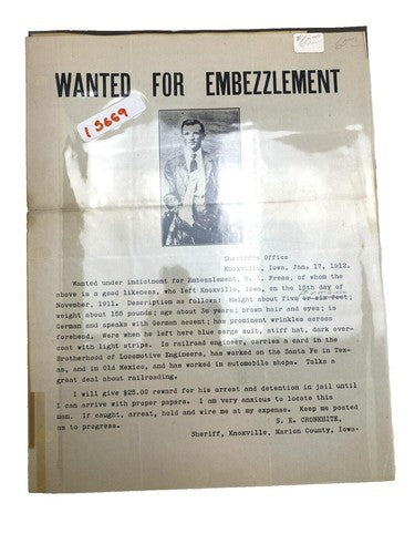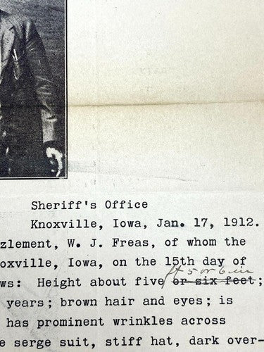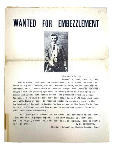 1912 Wanted Poster Embezzlement Knoxville Iowa Photo Antique Ephemera