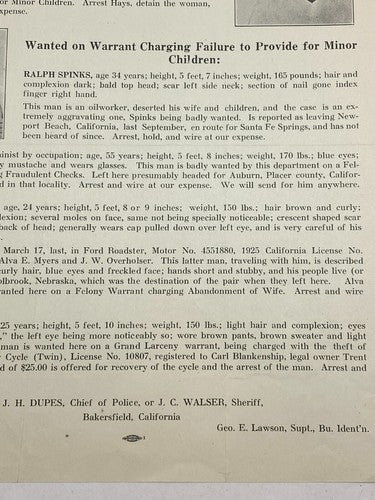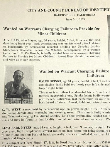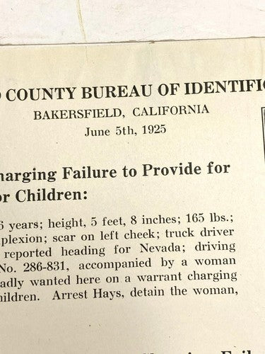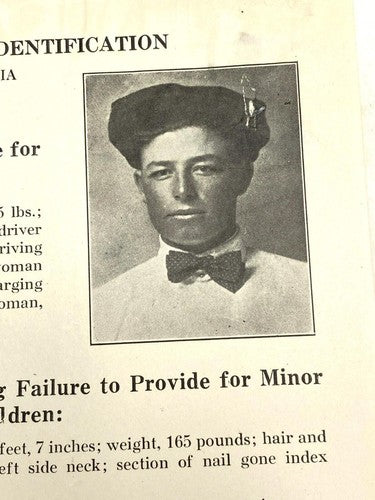 1925 Wanted Poster Flyer Failure to Provide for Minor Children Photo Antique
