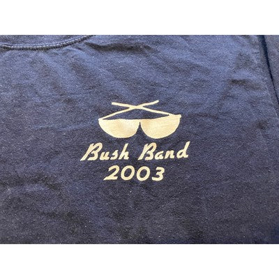 Relive the nostalgia with this vintage-inspired long sleeve t-shirt! A cool graphic of sunglasses and "Bush Band 2003" adds a touch of retro charm. The classic crew neck and long sleeves make it a comfortable and versatile piece for everyday wear. The navy color provides a timeless look that pairs well with jeans, chinos, or shorts. Perfect for casual outings, concerts, or simply lounging around, this t-shirt is a must-have for any vintage enthusiast.