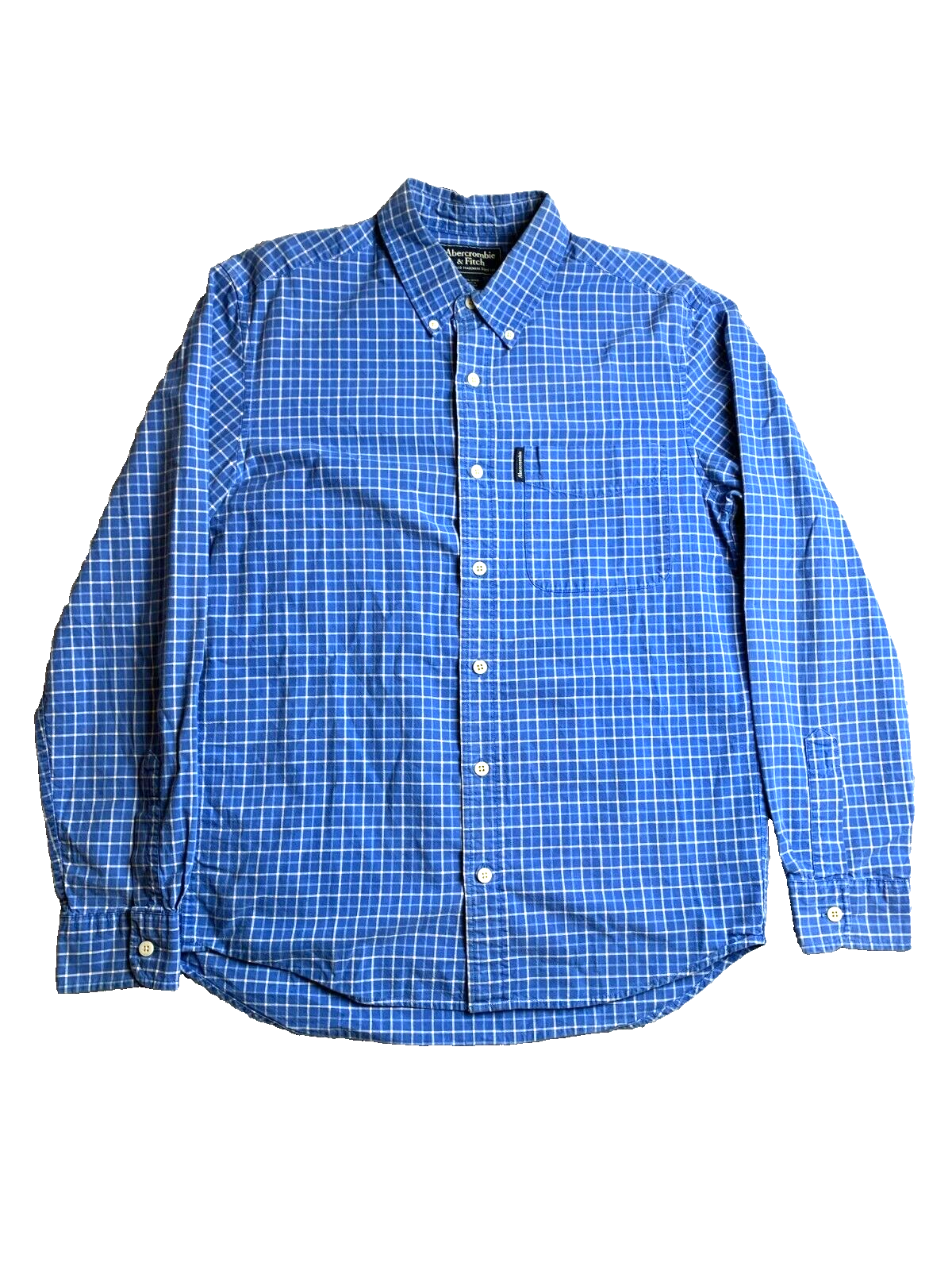 Abercrombie & Fitch Shirt Adult Small Blue Grid Checkered Button Up Casual Mens