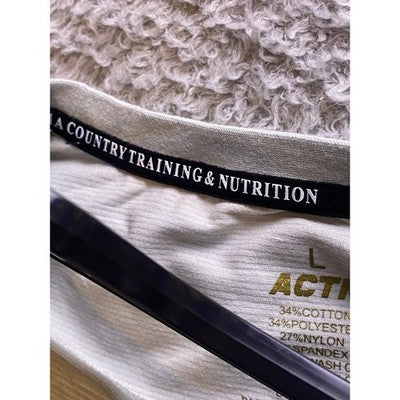 Keywords: ACTN, A Country Training & Nutrition, T-shirt, Men's T-shirt, Skull Graphic, Arrows, Workout Shirt, Athletic Wear, Activewear, Training Shirt, Casual Shirt, Size L, Beige T-shirt