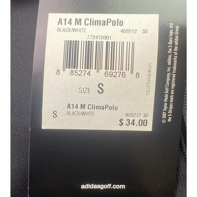 Keywords: Adidas, ClimaLite, Golf Polo, Polo Shirt, Mens Polo, Black Polo, White Polo, MVP Logo, Short Sleeve, Athletic, Sportswear, Golf Apparel, Menswear, Small