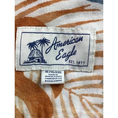 Keywords: American Eagle, Tropical shirt, Palm leaf print, Button-down shirt, Men's shirt, XL shirt, Casual shirt, Short sleeve shirt, Beach shirt, Resort wear, Vacation shirt, Summer shirt, Patterned shirt, Boho shirt