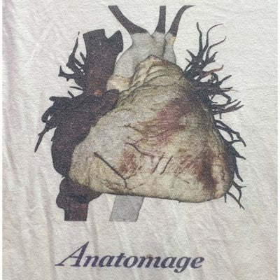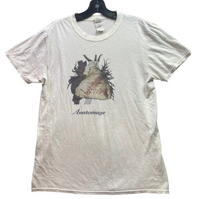 A unique graphic tee that stands out! This white Gildan Softstyle t-shirt features a striking Anatomage anatomical heart graphic. The design is eye-catching and will turn heads! The shirt is preowned, but has been well-maintained and offers a comfortable fit. Ideal for casual wear, concerts, or making a statement about your love for anatomy!