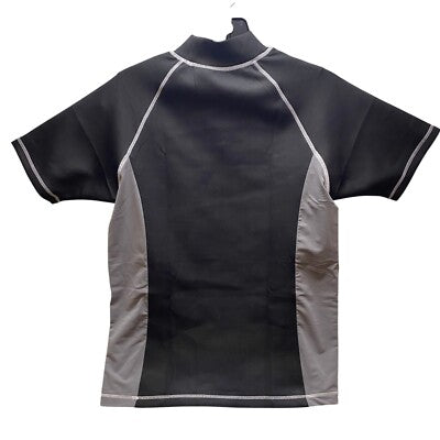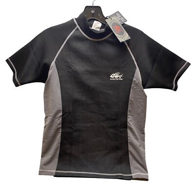 Unleash your child's inner adventurer with this unique rash guard! Designed for comfort and protection, this short-sleeved swim shirt features a sleek black body with contrasting gray side panels and stylish white stitching. The high neckline provides extra coverage, while the iconic "Ancient Fish King" logo adds a touch of playful flair. Perfect for a day at the beach, a swimming lesson, or any outdoor water activity where sun protection is a must, this rash guard combines practicality with a cool, distinctive look.