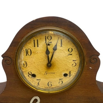 Keywords: Sessions Clock, Mantel Clock, Vintage Clock, Antique Clock, Key Wind Clock, Wooden Clock, Home Decor, Collectible Clock, Dark Wood Clock, Arched Clock, Decorative Clock, Analog Clock, Classic Clock