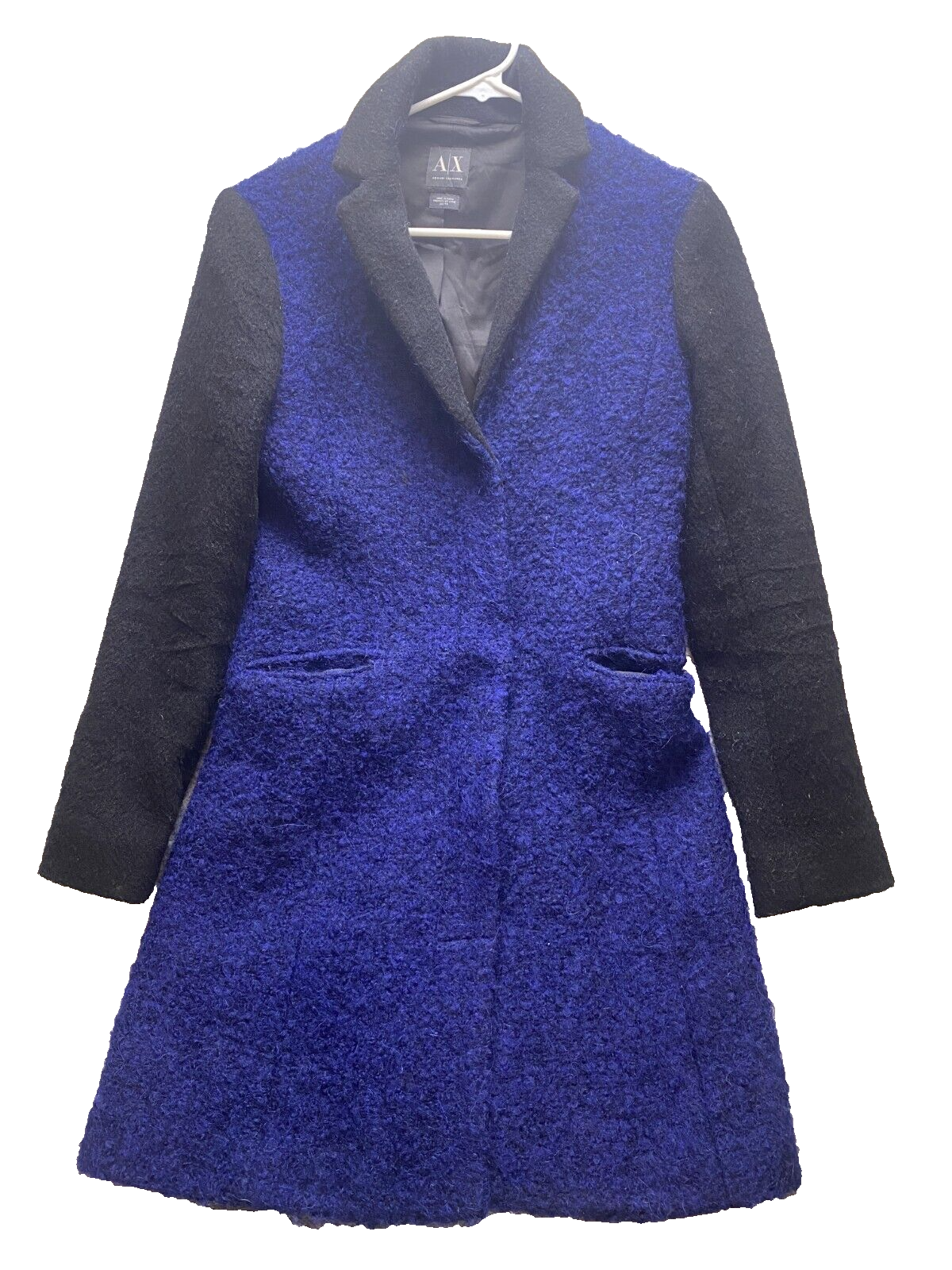 Armani Exchange Coat Women Extra Small Wool Alpaca Long Snap Front Ladies