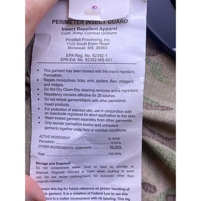 Command respect and tactical advantage with this authentic Army Combat Uniform (ACU) jacket, designed for peak performance in demanding environments. A robust construction boasts a camouflage pattern that excels in varied terrains, providing superior concealment. Equipped with multiple pockets, including secure sleeve pockets, it provides ample storage for essential gear and tools. Engineered with Perimeter Insect Guard technology, it provides proven protection against mosquitoes, ticks, and other insects, maintaining focus. As a flame-resistant garment, it enhances safety and durability. Ideal for outdoor enthusiasts, military simulations, or collectors, this garment is a testament to rugged reliability and battlefield innovation.