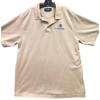 Keywords: Arnold Palmer, Polo shirt, Mens polo, Golf shirt, Harbour Point Yacht Club, Embroidered polo, Pima cotton, Casual shirt, Sportswear, Mens clothing, Large, Beige polo, Golf apparel, Yacht club attire