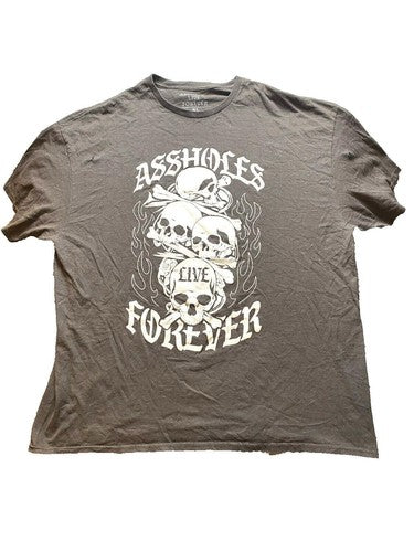 Assh*les Live Forever Shirt Adult Extra Large Skull Bones Y2K Skater Gray Mens