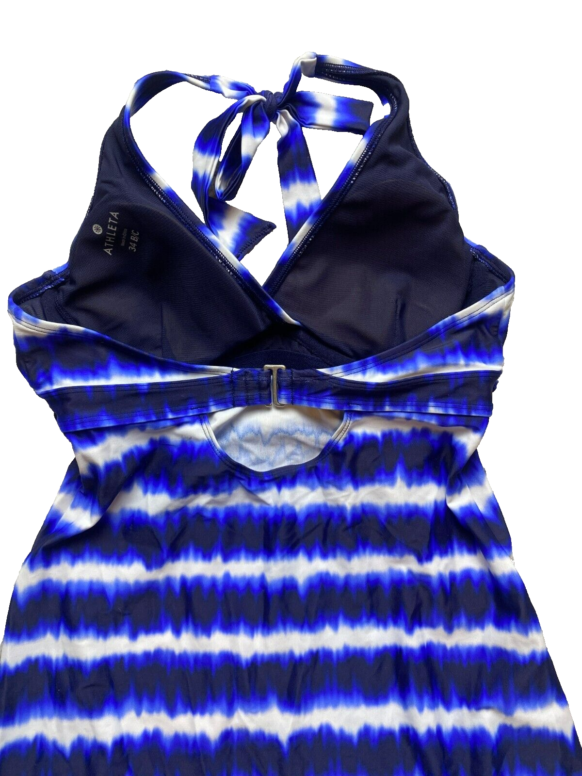 Athleta Dress Womens 34BC Small Blue White Tara Halter Boho Hippie Spandex Nylon