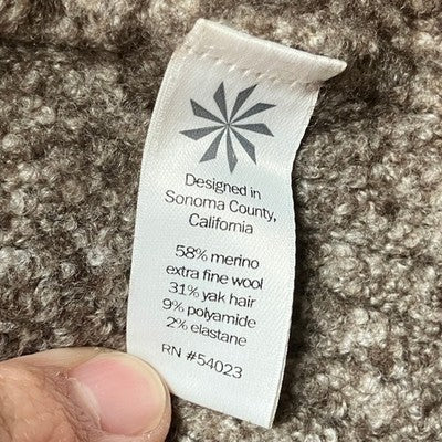 Wrap yourself in cozy sophistication with this ATHLETA knit vest. The rich brown speckled texture creates a visually appealing depth, while the sleeveless design offers versatile layering options. Crafted with a blend of fine merino wool, yak hair, polyamide, and elastane, this vest promises both warmth and a comfortable stretch. Featuring convenient front pockets, it's perfect for adding a touch of style to your casual outings or layering for a chic office look.