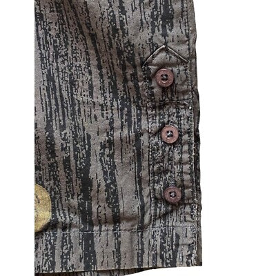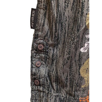 Evokes a tropical vibe with this Avirex button-up shirt, a statement piece that blends comfort and style. The shirt features a unique floral print in orange, white, and beige tones against a textured gray backdrop, creating a visually appealing contrast. The short sleeves and button-down design offer a relaxed fit, perfect for warm weather. The shirt is finished with detailed accents like the branded buttons and a subtle Avirex tag on the side. This shirt is ideal for casual outings, beach parties, or adding a touch of flair to your everyday wardrobe.