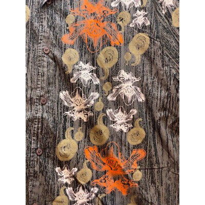 Keywords: Avirex shirt, floral print shirt, button up shirt, short sleeve shirt, mens Hawaiian shirt, tropical shirt, casual shirt, menswear, size L, gray shirt, orange floral, vintage Avirex, summer shirt
