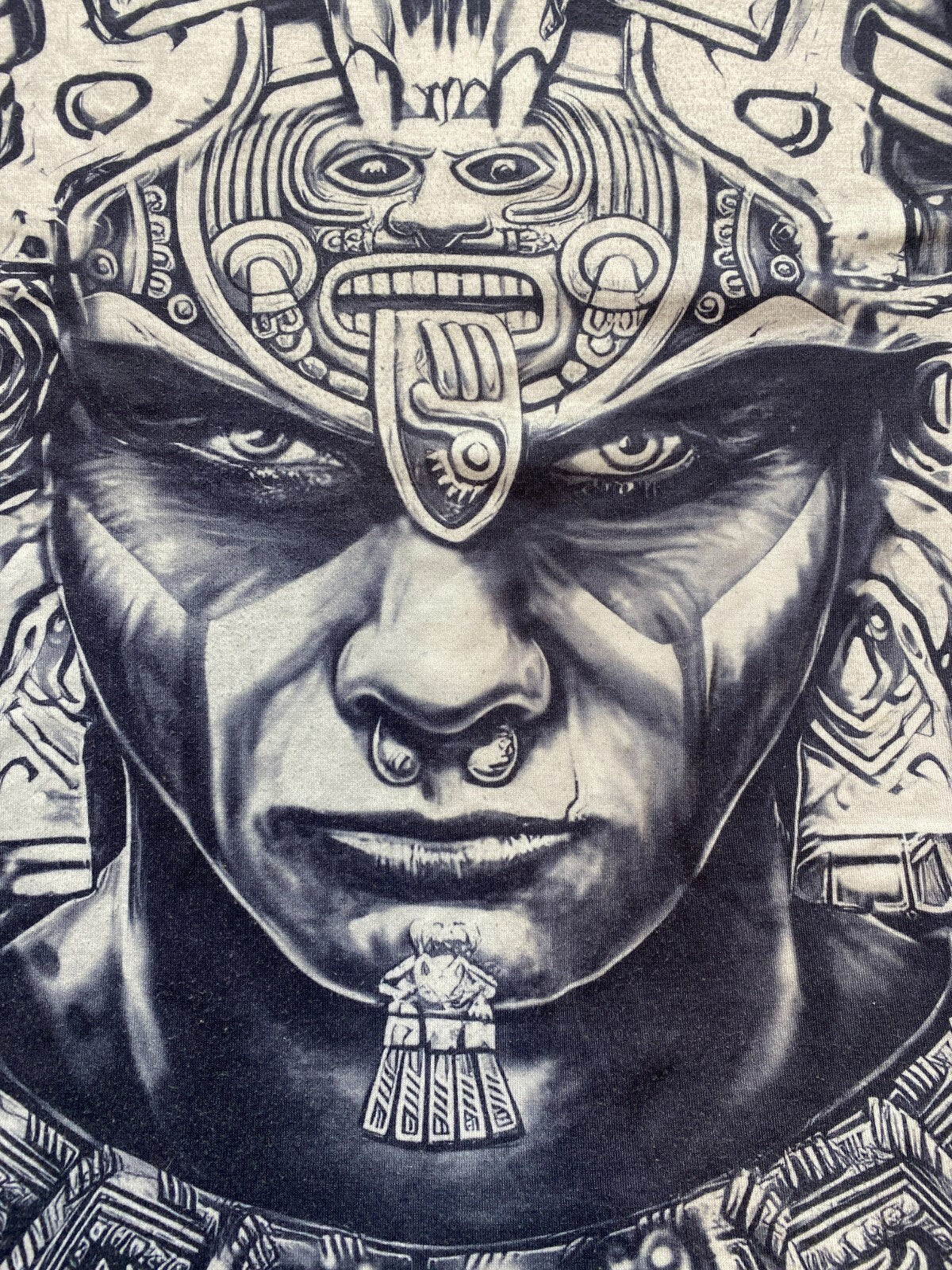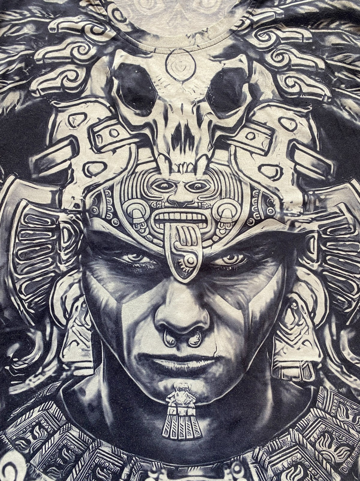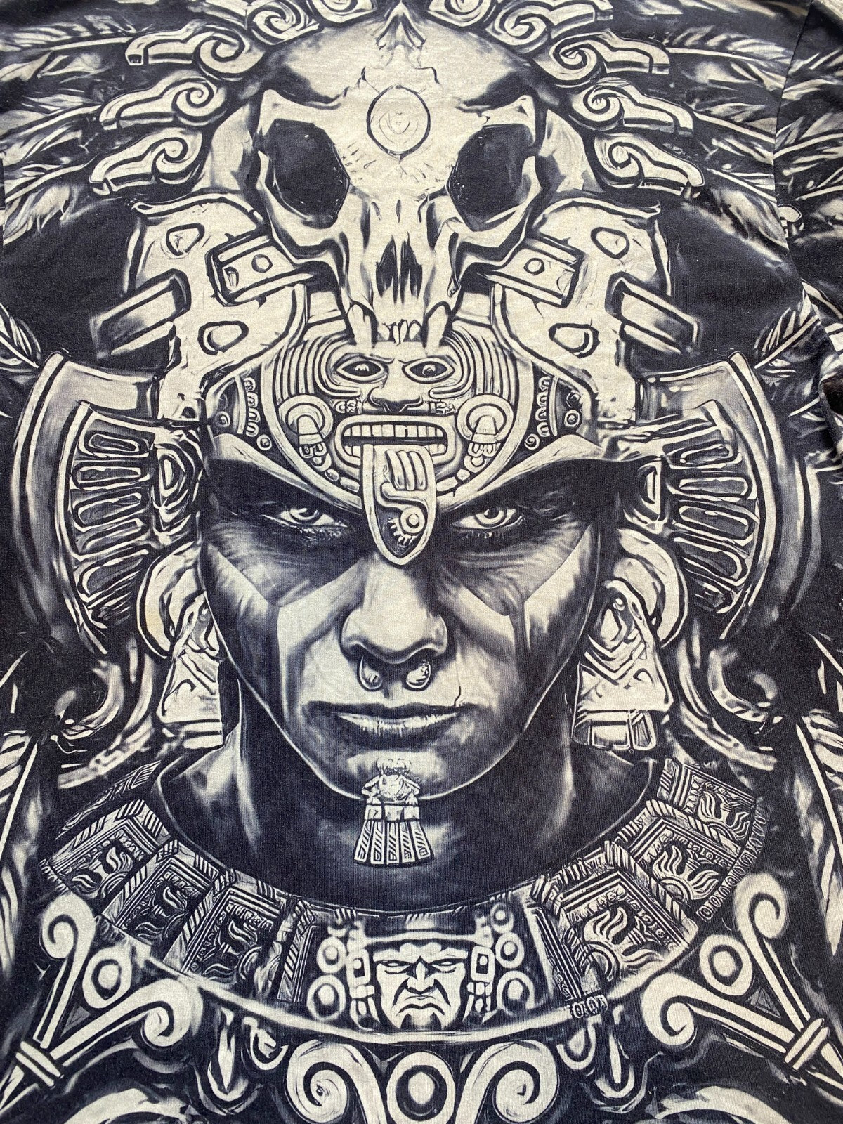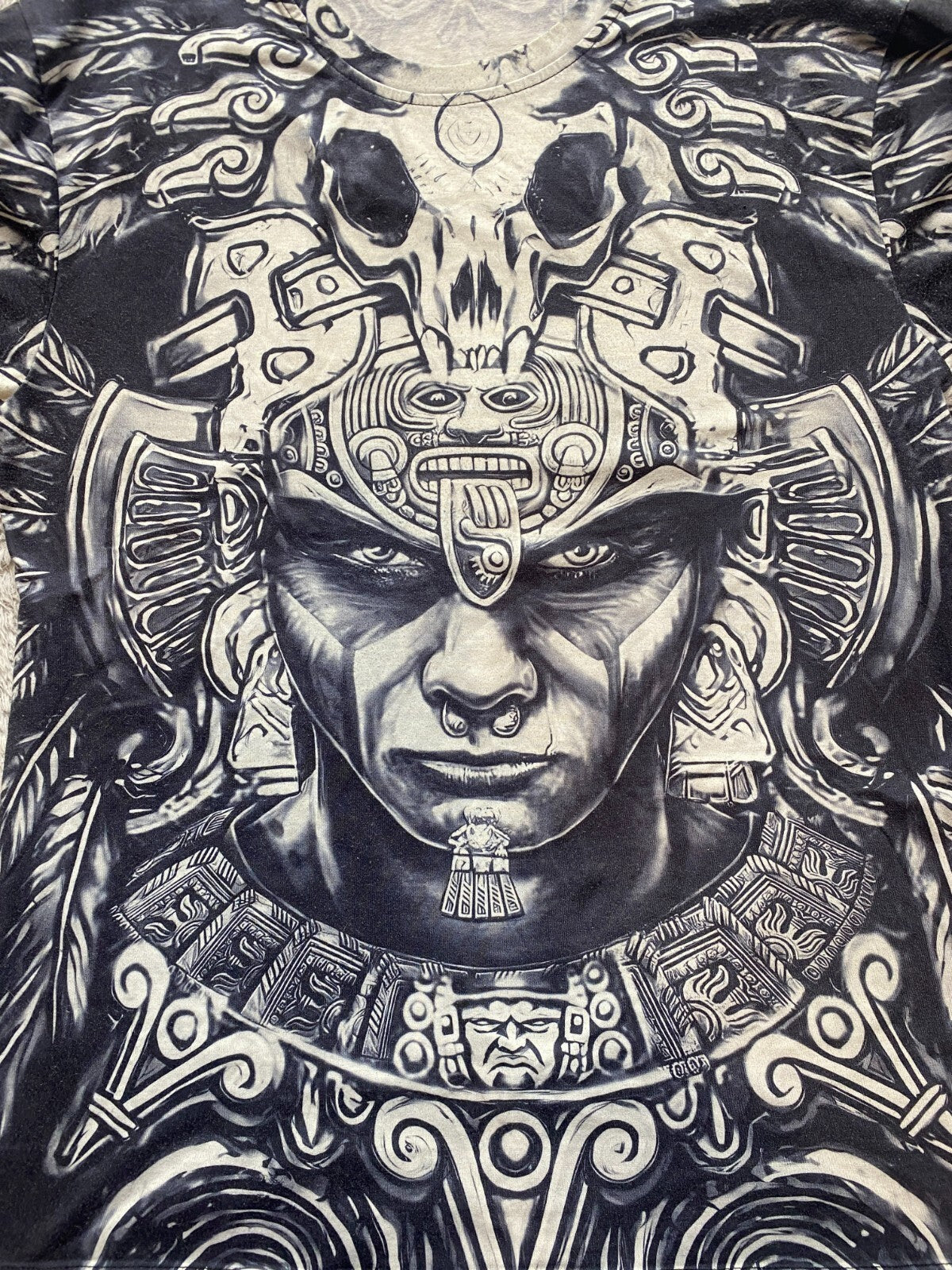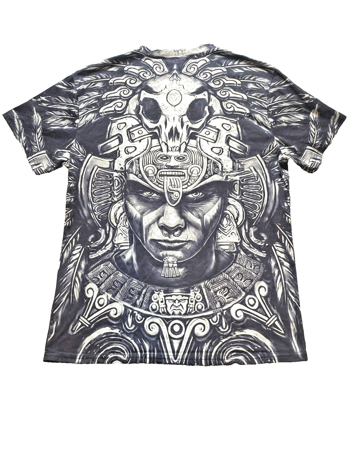 Aztec Mexican Shirt Adult Medium Steel Gray Ivory AOP Warrior Empire Tattoo Mens