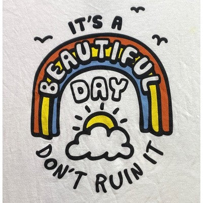 Keywords: Mens T Shirt, Graphic Tee, Rainbow Shirt, Positive Affirmation, Beautiful Day, Don't Ruin It, Cloud Graphic, Casual Wear, Comfortable Tee, Mens XL Shirt, Summer T Shirt, Everyday Style, Statement Tee, Vibrant Print, DOM Brand