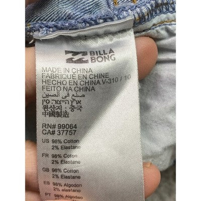 Keywords: Billabong shorts, women's denim shorts, lace up shorts, distressed shorts, cut off shorts, frayed hem shorts, summer shorts, beach shorts, festival shorts, boho shorts, casual shorts, light wash denim, denim shorts size 3