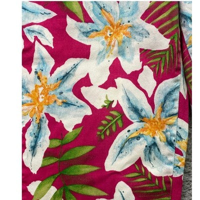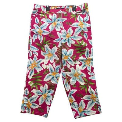 Billblass Pants Womens 14 Bloomcore AOP Capri Cropped Beachy Coastal Mature