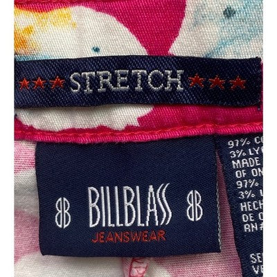 Embrace vibrant style with these Billblass Jeanswear capris, bursting with a playful floral print of blue and white blossoms against a bold pink background. The leafy green accents add a touch of tropical flair, perfect for bringing a cheerful vibe to your wardrobe. Crafted with a touch of stretch for comfortable movement, these capris are ideal for a sunny day at the farmer's market or a relaxed vacation getaway.