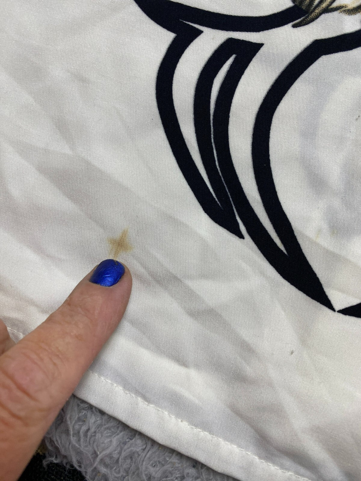 If we noticed any damage to this item, stains, holes, etc... it will be shown in photos or noted in the description or title on this listing.