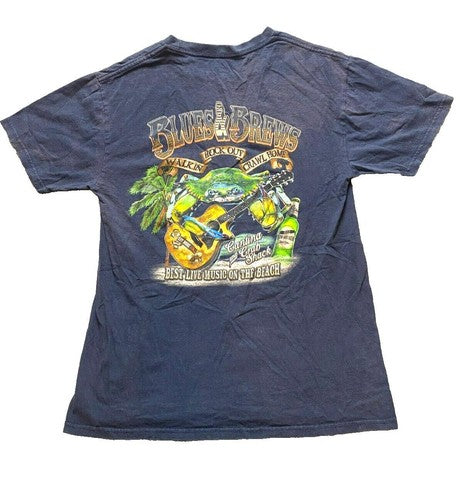 Blues & Brews Shirt Womens Medium Cantina & Crab Snacks Guitar Beach Palm Tree