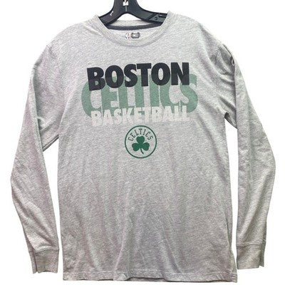 Elevate your game day ensemble with this classic Boston Celtics long sleeve tee! Soft and breathable, this heather gray shirt proudly displays the team's name and iconic clover logo across the chest. Perfect for showcasing your Celtics pride at the arena, a casual watch party with friends, or even a relaxed weekend outing.