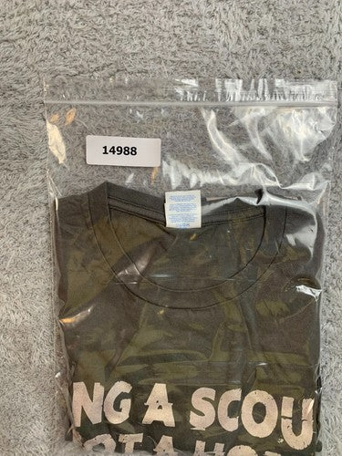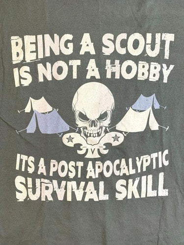 Boy Scout Shirt Adult Medium Olive Green Skull Tents Camp Survival Grunge Mens