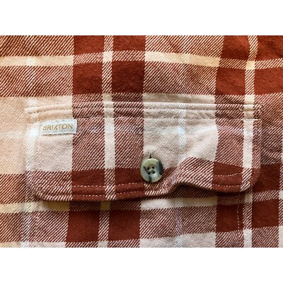 Keywords: Brixton, flannel shirt, plaid shirt, shirt jacket, button up shirt, long sleeve shirt, womens shirt, casual shirt, brown plaid, beige plaid, small shirt, S, outerwear, fall fashion, winter fashion