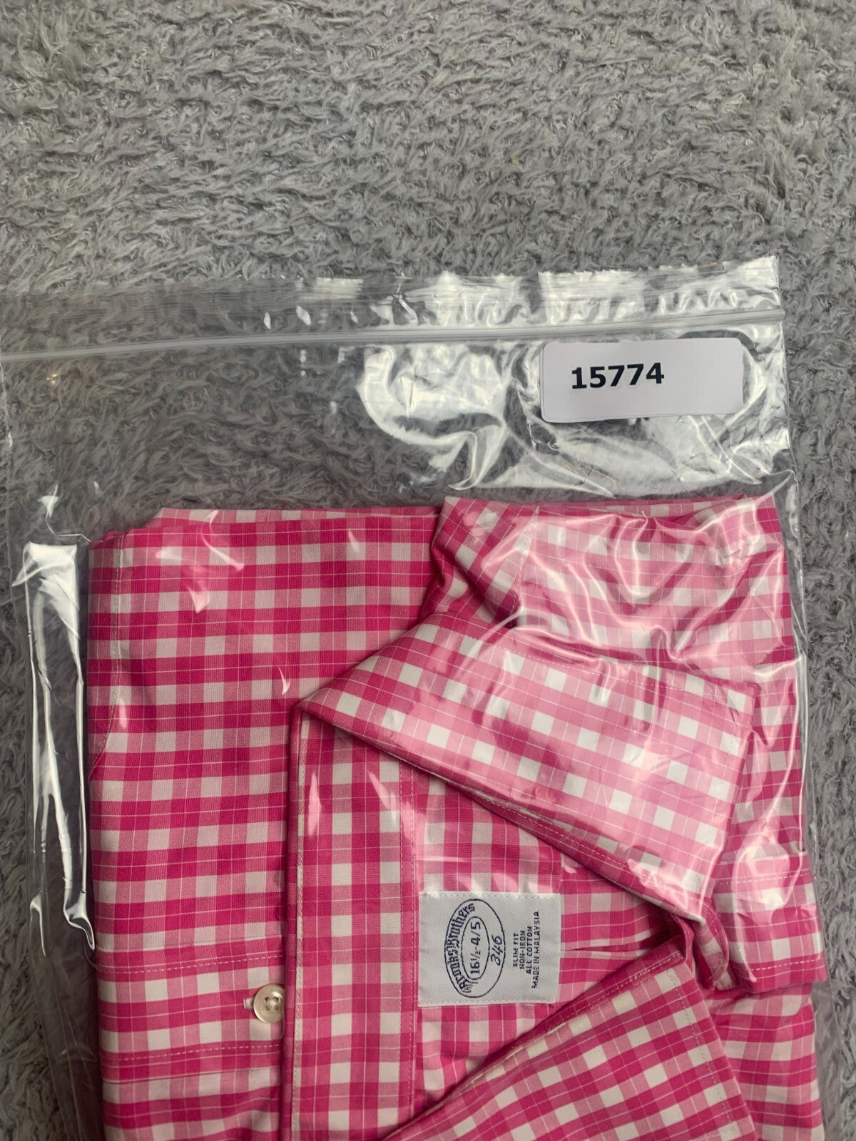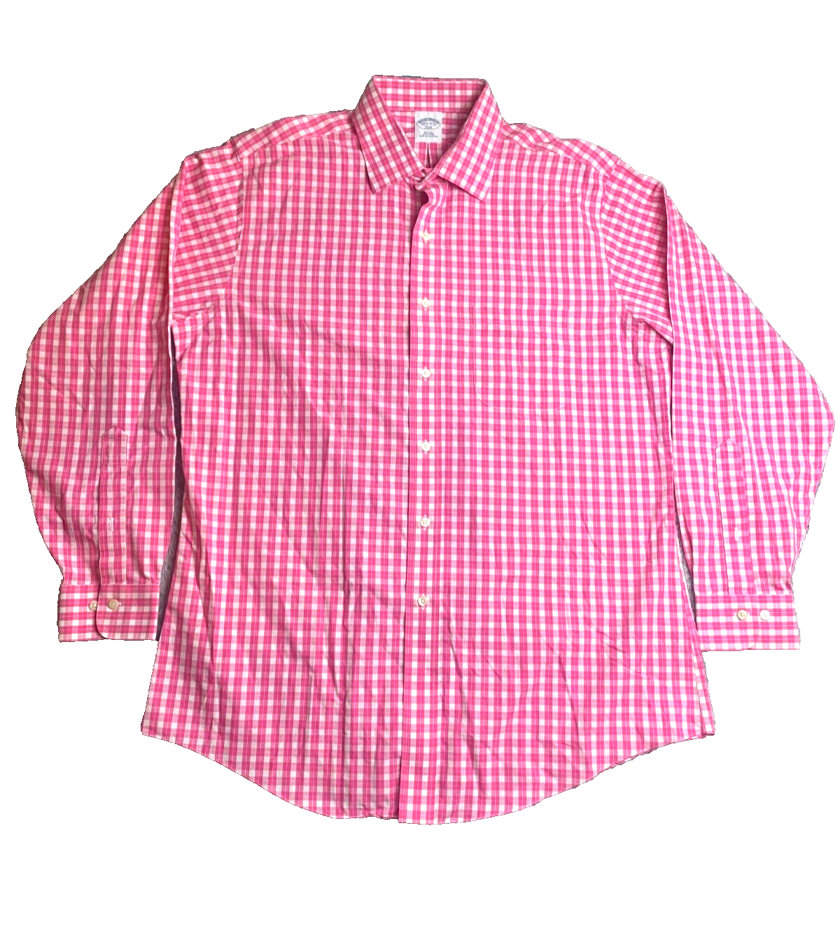 Brooks Brothers 346 Shirt Adult 16.5 4/5 Pink Checkered Slim Fit Non Iron Mens